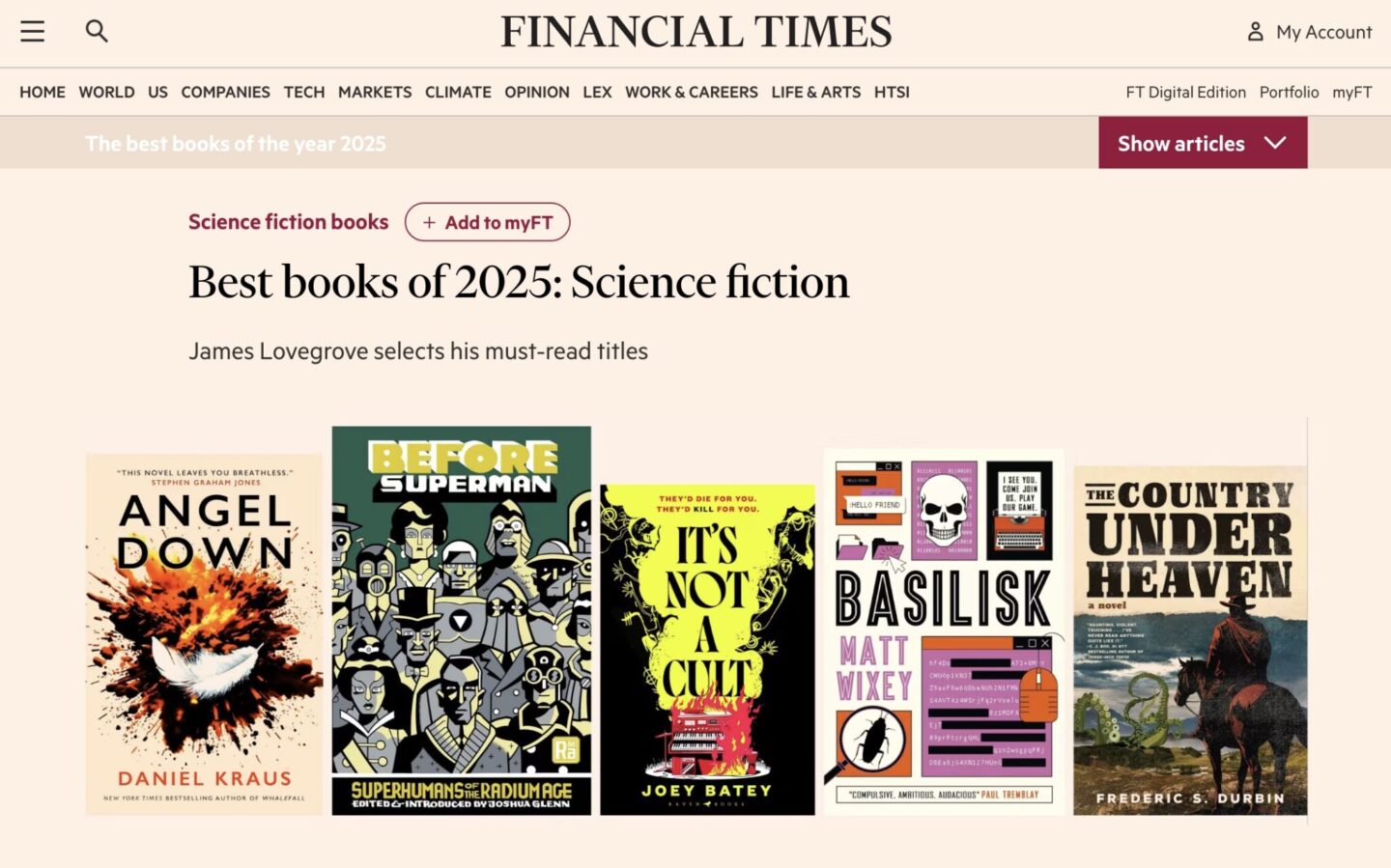 In November, Financial Times columnist James Lovegrove named Before Superman one of the Five Best SF Books of 2025. Here’s the writeup: